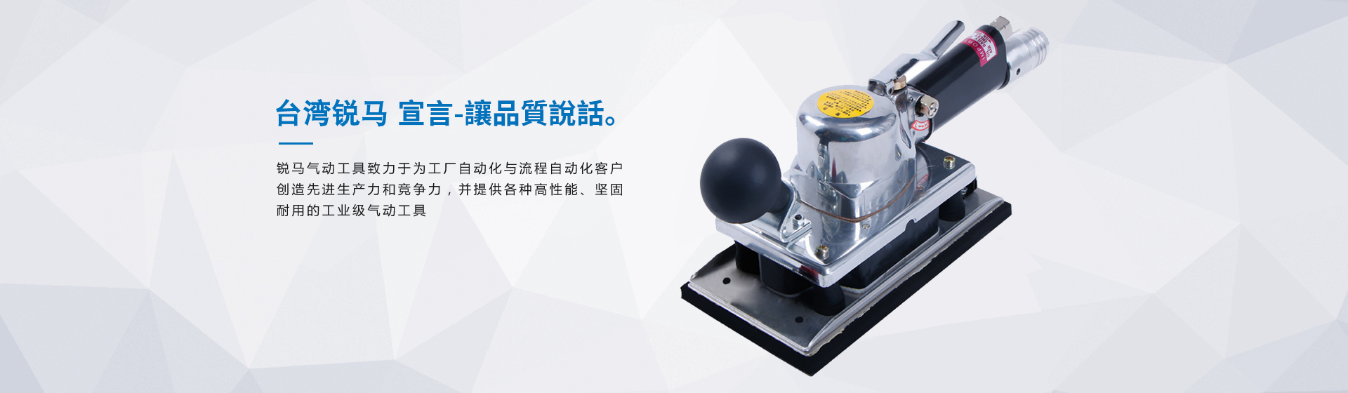 銳馬氣動(dòng)工具廠家是臺(tái)灣專業(yè)制造氣動(dòng)工具廠"筌誠機(jī)械工業(yè)",30多年來致力于氣動(dòng)/電動(dòng)工具領(lǐng)域之研發(fā),生產(chǎn)和銷售,努力提升本身產(chǎn)品價(jià)值,在臺(tái)灣氣動(dòng)工具制造領(lǐng)域始終處于領(lǐng)先地位,并成功銷往國際市場(chǎng)。